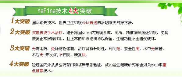 “YeFine技术”治疗慢性咽炎四大突破性优势: