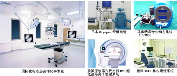 20余套尖端设备的引进,例如,引进的DNRYeFine消融系统、奥林巴斯纤维鼻咽喉镜成像系统、STORZ鼻内窥镜、WOLF手术影响系统、蔡氏手术显微镜、国际听力检测系统和电脑微波治疗系统等一系列前沿水平的诊疗设备。