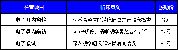 3、 优秀劳动者耳鼻喉内窥镜检查费援助50%。