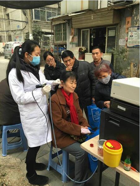 点咨询医生冬季是鼻炎、过敏性鼻炎、耳鸣耳聋等耳鼻喉疾病的多发季节。为了提高市民们对耳鼻喉疾病的认识和防范意识,西安中大耳鼻喉医院于1月4日在西安环北路社区的吊桥小区,开始了2016年的场义诊活动,为吊桥小区的市民们讲解耳鼻喉基础知识,以及耳鼻喉内窥镜检查和血压测量,给市民们带去冬日里的温暖。