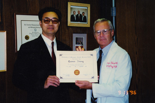 1993年,正值风华正茂的张全安决定勇闯医学禁区,着手对耳鼻喉头颈外科疾病的治疗进行系统性研究与探索。当时历任耳鼻喉科副主任的张全安教授,以高级访问学者身份多次赴美从事科研和学术交流长达5年多;其中参与明尼苏达耳鼻喉头颈外科研究中心进行病理研究,所提出的一系列理论居世界前沿水平,国内领先地位。