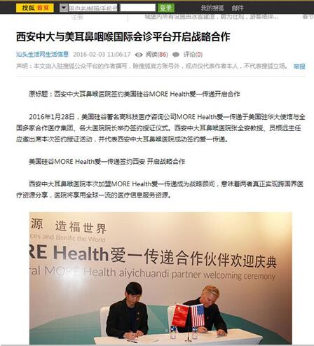 【搜狐新闻】西安中大与美耳鼻咽喉国际会诊平台开启战略合作